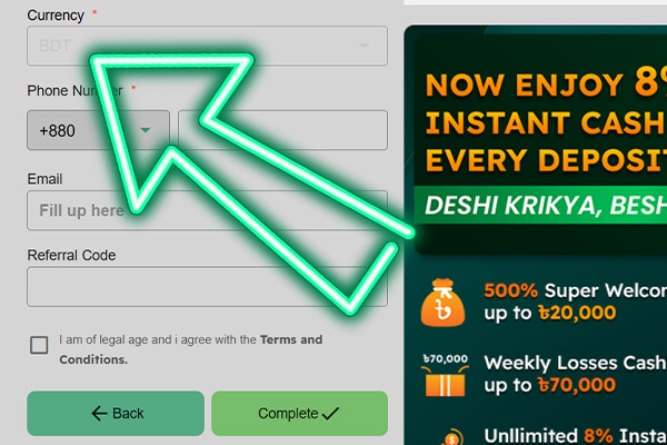 - Both you and each friend receive a one time 600 BDT bonus after the friend deposits a total of 2,000 BDT and completes 10,000 BDT turnover five times within 30 days of registration.