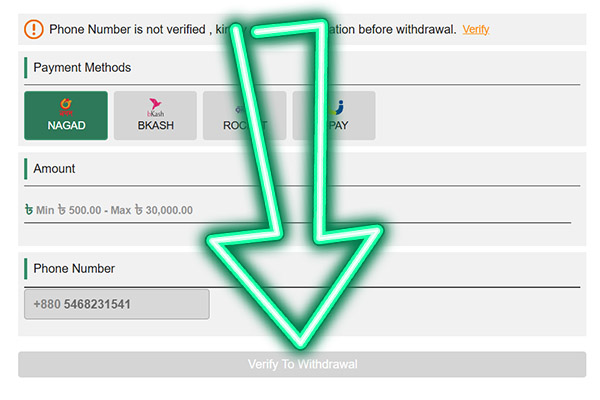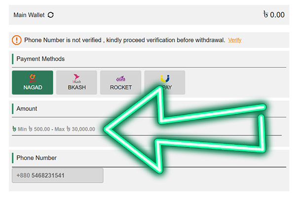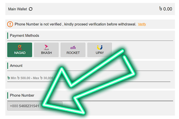 | Nagad | 500 | 30000 | 5 - 60 min, up to 24 hours | Stable with verified phone and exact number format |