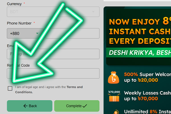 - Both you and each friend receive a one time 600 BDT bonus after the friend deposits a total of 2,000 BDT and completes 10,000 BDT turnover five times within 30 days of registration.