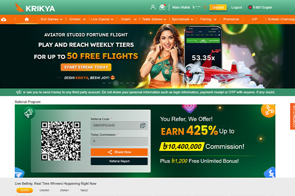 - Use quick switch between web and the Krikya app so the same BDT balance follows you.